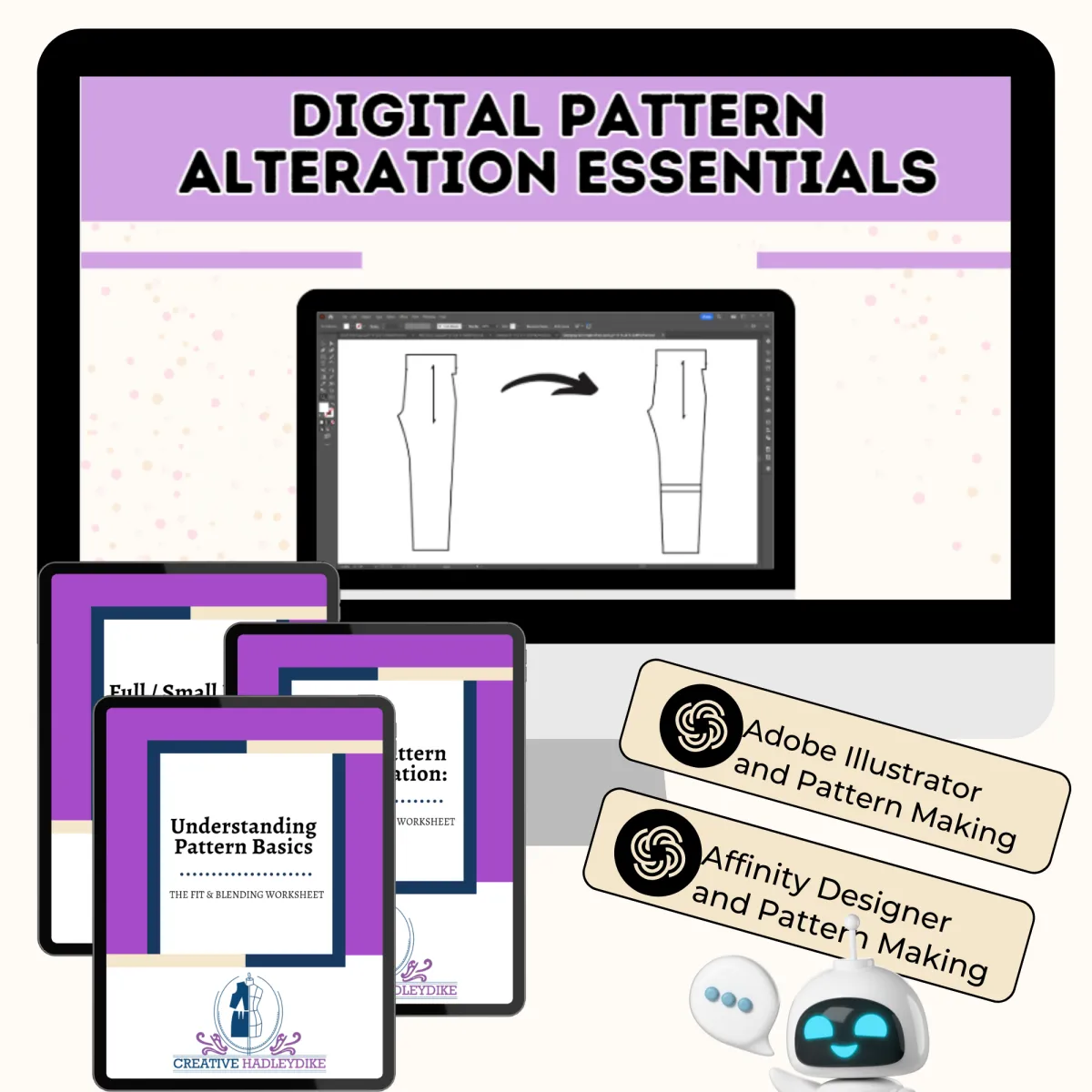 Digital Pattern Alteration Essentials teaches you how to resize, reshape, and personalize sewing patterns inside Illustrator and Affinity Designer so you can improve fit, explore design ideas, and stop feeling stuck between sizes or styles.
